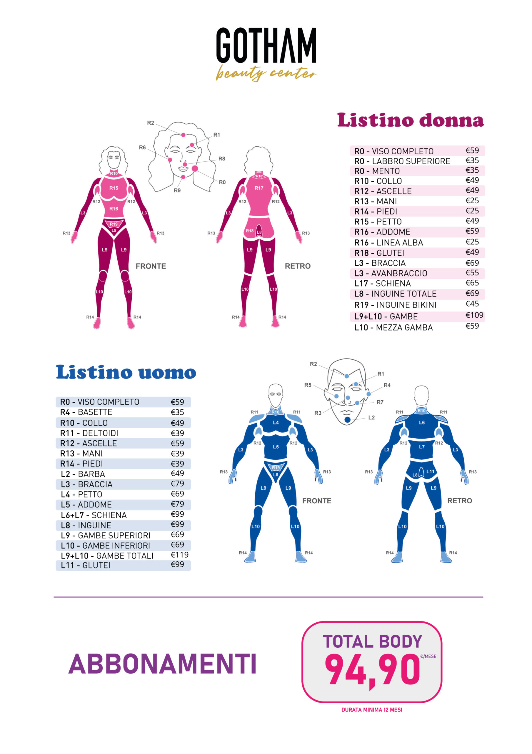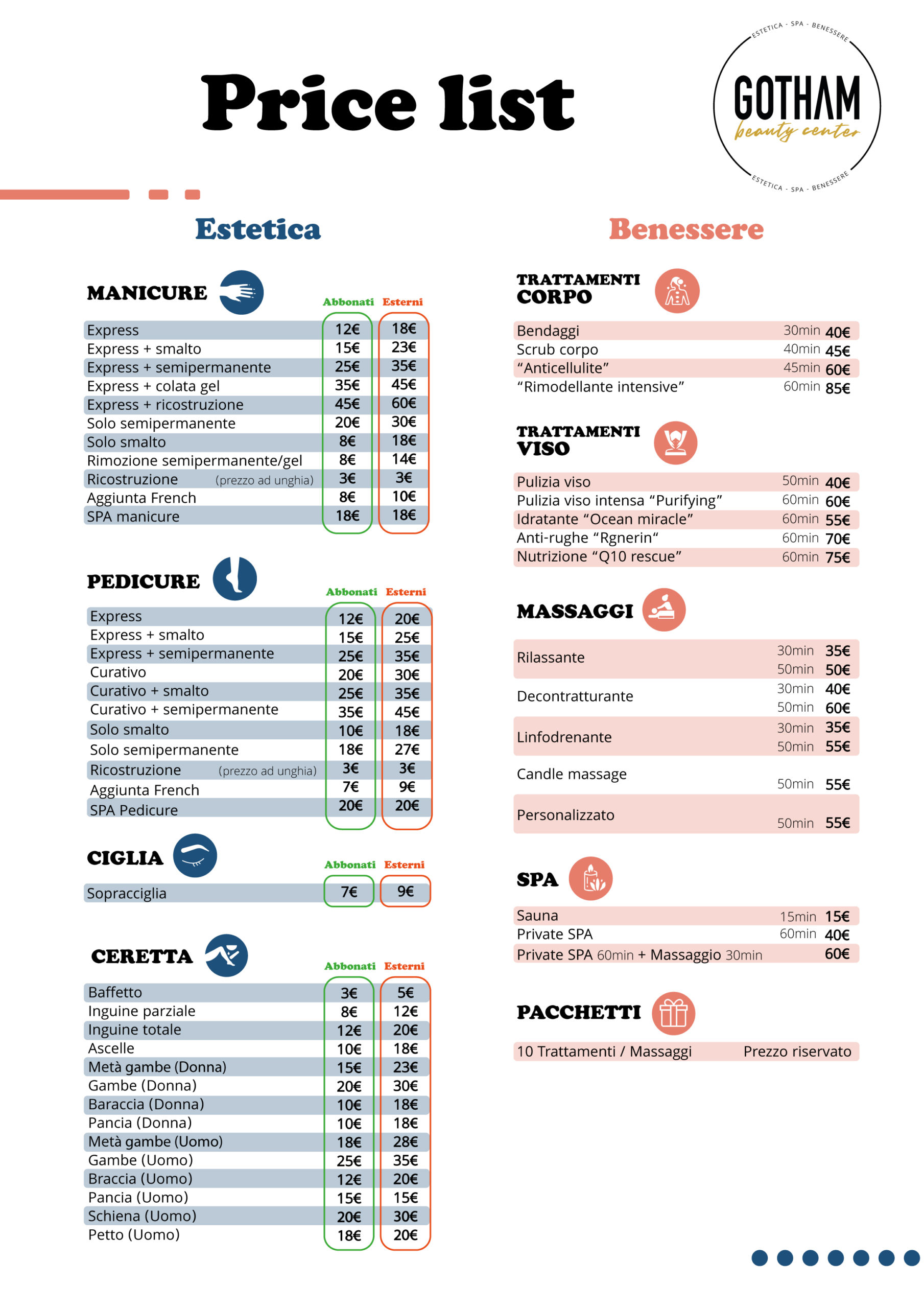 Benvenuto nella sezione SPA & Beauty di Gotham, il luogo dedicato alla bellezza e al benessere del tuo corpo.